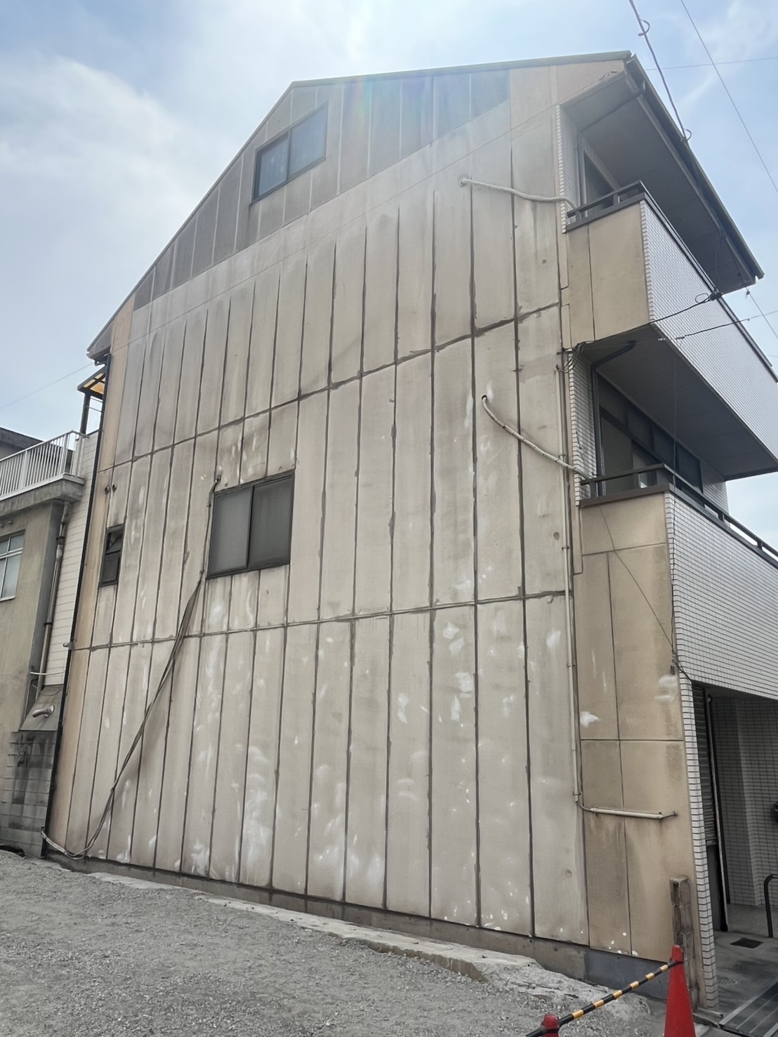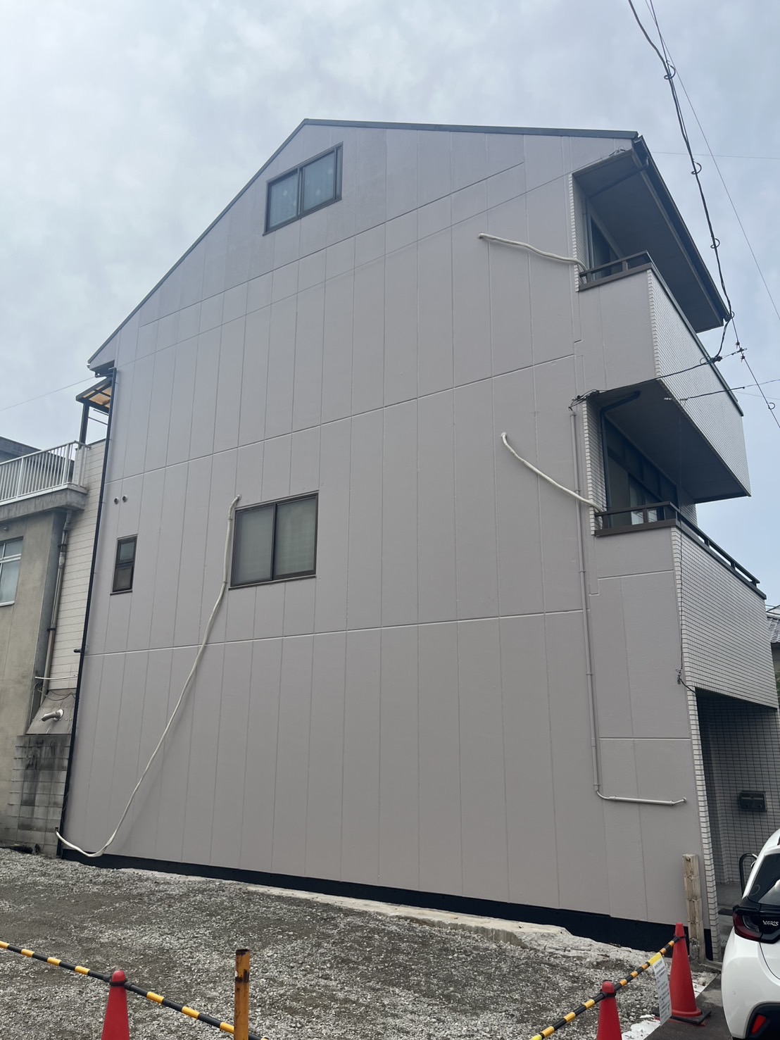 隣の建物が解体され、無塗装の外壁がむき出しになってしまったため1面塗装させて頂きました。