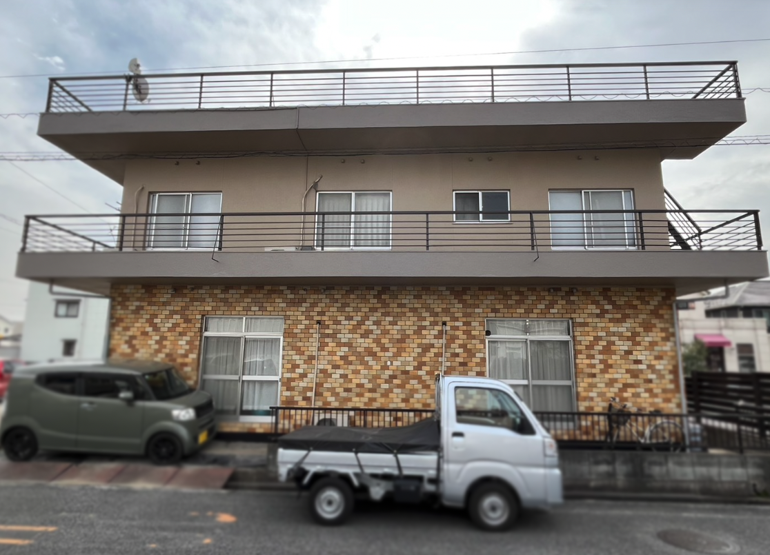◇施工前コメント 軒天のコンクリートが多数欠落している状況でした。 ◇施工後コメント 水が入っている手摺りの補修を念入りに行い、色を変えてイメージの違う家へと生まれ変わりました。