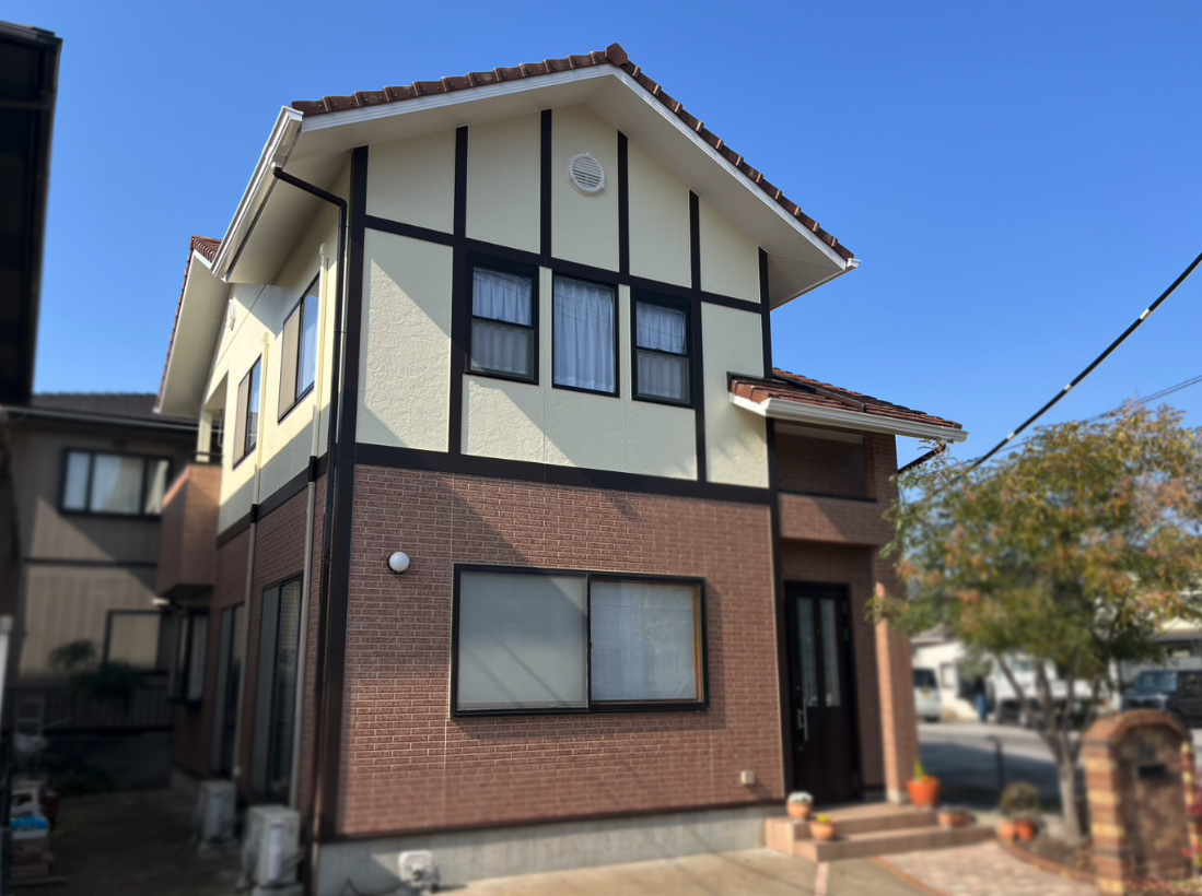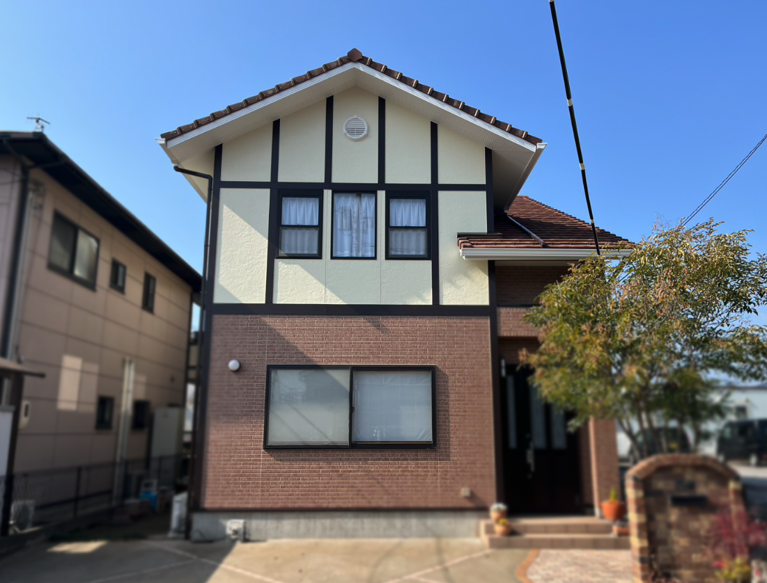 ◇施工前コメント 外壁のチョーキング、コーキングの劣化が進行している状態でした。 ◇施工後コメント 既存色の復元をイメージし、1階部分にグラデーション塗装を施し、新築のように蘇りました。
